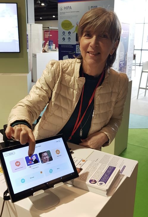 Le but de notre venue sur le salon est de présenter notre tablette développée avec « mon lien visio » pour contacter son Majordome ou un membre de sa famille en un simple clic. Ce service rapide et intuitif est une bonne innovation pour les seniors qui éprouvent souvent des difficultés avec les nouvelles technologies.